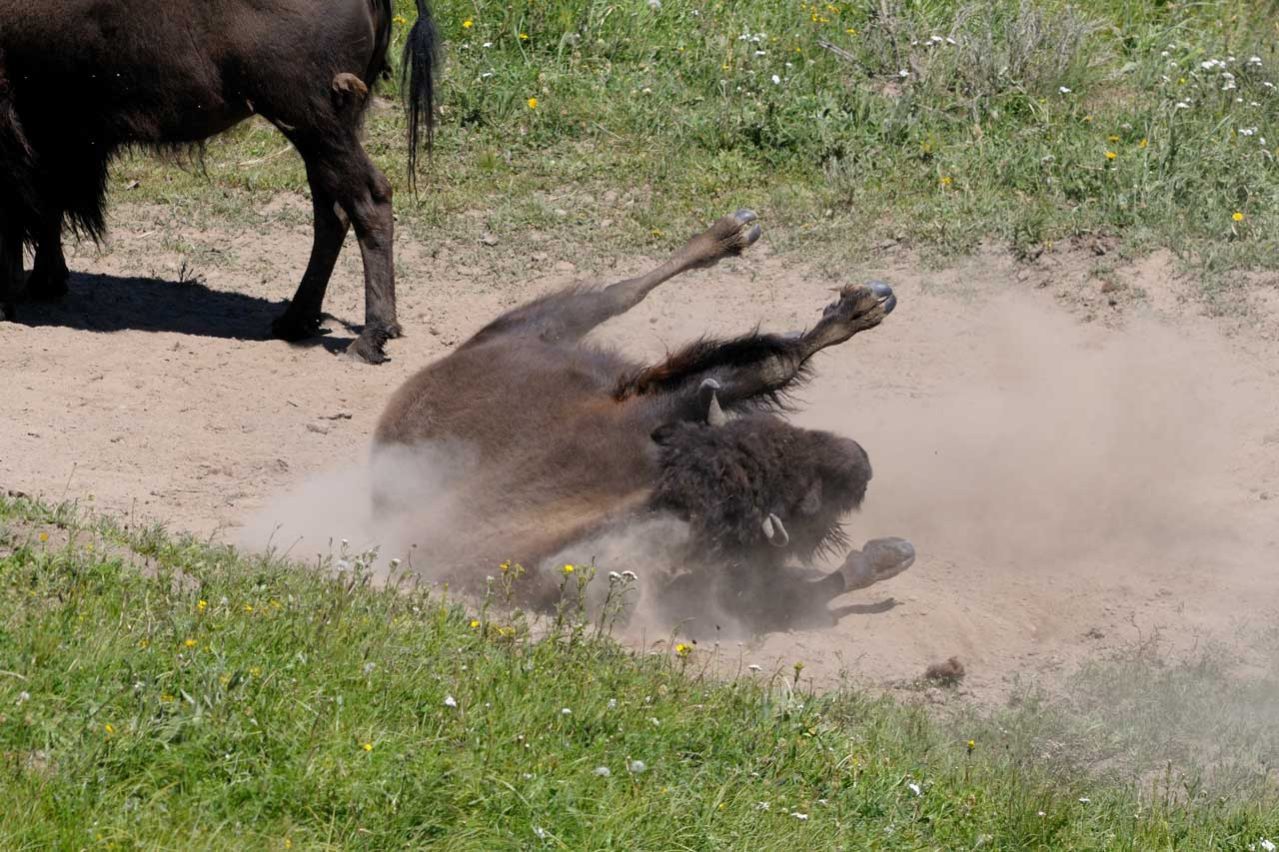 Although the eating is helpful, the wallows that the buffalo create are even more helpful, from an ecosystems perspective. Basically, the buffalo roll around in the mud or dust. Ecologists speculate that this could be to protect themselves from insect bites, or to relieve an itch. What is certain is that they roll around—or wallow—compacting the soil with their heavy bodies, and leaving an impression on the earth.