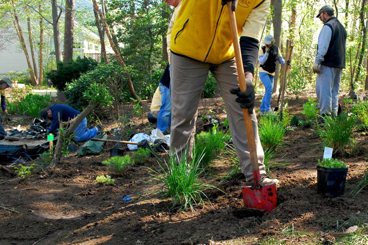 Installing the 8 Mile Rain Garden will make for a fun and rewarding weekend with your friends, family or neighbors. The installation of this lot design should not require professional assistance if you, with the help and support of others, would like to build this design. Please refer to the Step-By-Step section for guidance. The installation process does not require any special, mechanized equipment. The most strenuous physical tasks are potentially removing any existing vegetation from your rain garden footprint (you will need to do this during the few weeks prior to when you are ready to break ground), and also digging out the low area for your rain garden. Always hire a professional (or barter with one of your more energetic neighbors) if you are not up for the challenge, but remember, this will increase your costs. The good news is that the 8 Mile Rain Garden is a manageable size for a first time landscape project, and you should be able to transport all of the materials you need in a few trips by bus or by car.