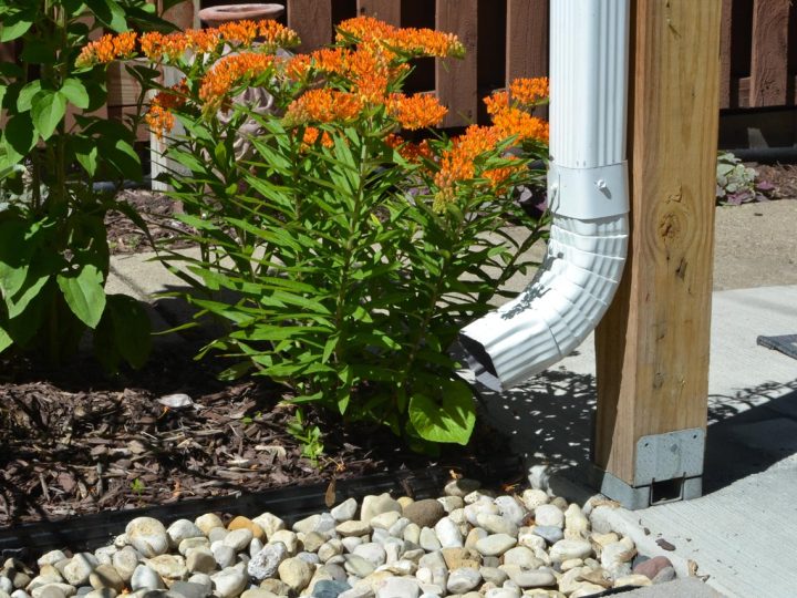The 8 Mile Rain Garden is a very low-cost lot design. The majority of the cost of installing this design is for the potted plants. To save money, consider propagating cuttings from others in your neighborhood, or organizing a perennial swap. Planting your rain garden from seed is another way to save additional money on the cost of constructing this beautiful and pollinator-friendly lot design.