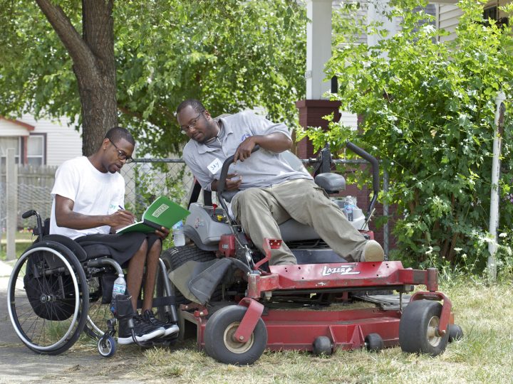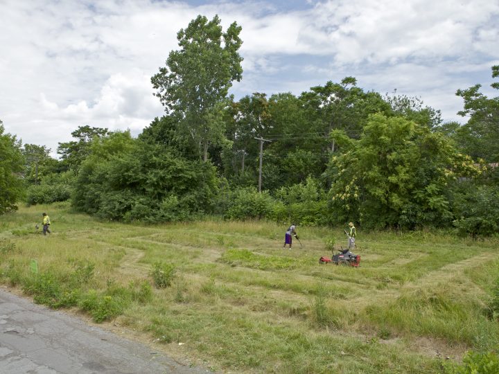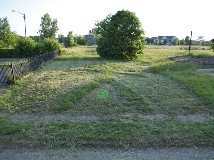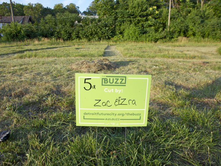 The Buzz lot design is a barber-inspired pattern cut into a lot using lines, edges, shapes or images. The designs presented here are based on workshops held in the summer of 2016, where Detroit-based barbers and mowers worked together in teams to cut patterns into lots. While they had special skills, with a little creativity, customization, and planning, anyone can buzz their lot!